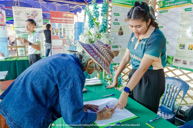จำหน่ายพันธุ์ข้าวของมหาวิทยาลัยแม่โจ้ เพื่อส่งเสริมการเกษตรที่ยั่งยืนและเพิ่มทางเลือกให้แก่เกษตรกรในพื้นที่ ณ ข่วงสืบสายน้ำ บ้านป่าไผ่ ตำบลเหมืองแก้ว อำเภอแม่ริม จังหวัดเชียงใหม่